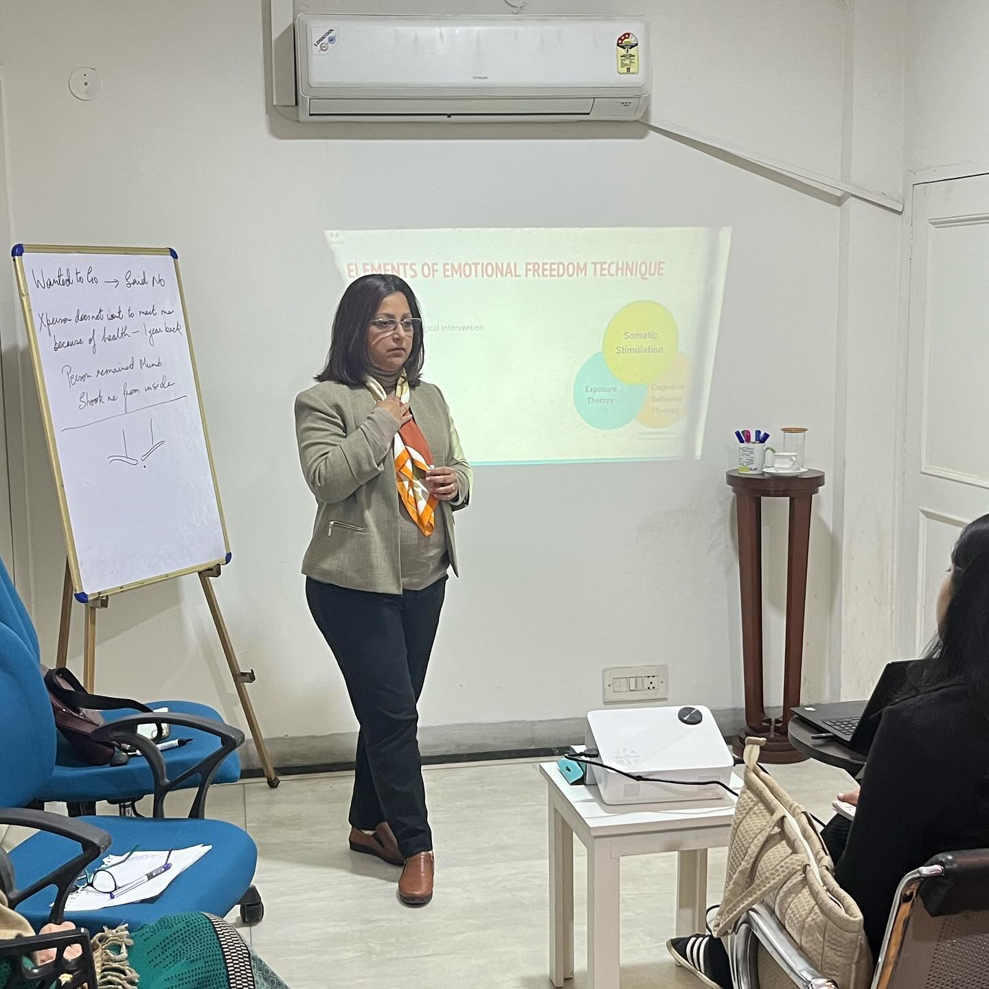 EFT employs very light tapping along with focused awareness to facilitate the reduction of the emotional intensity. A lot of people feel that this very simple and grounding method helps them calm down the body, let go of the stress that has been building up, and go back to a more stable and calmer state.